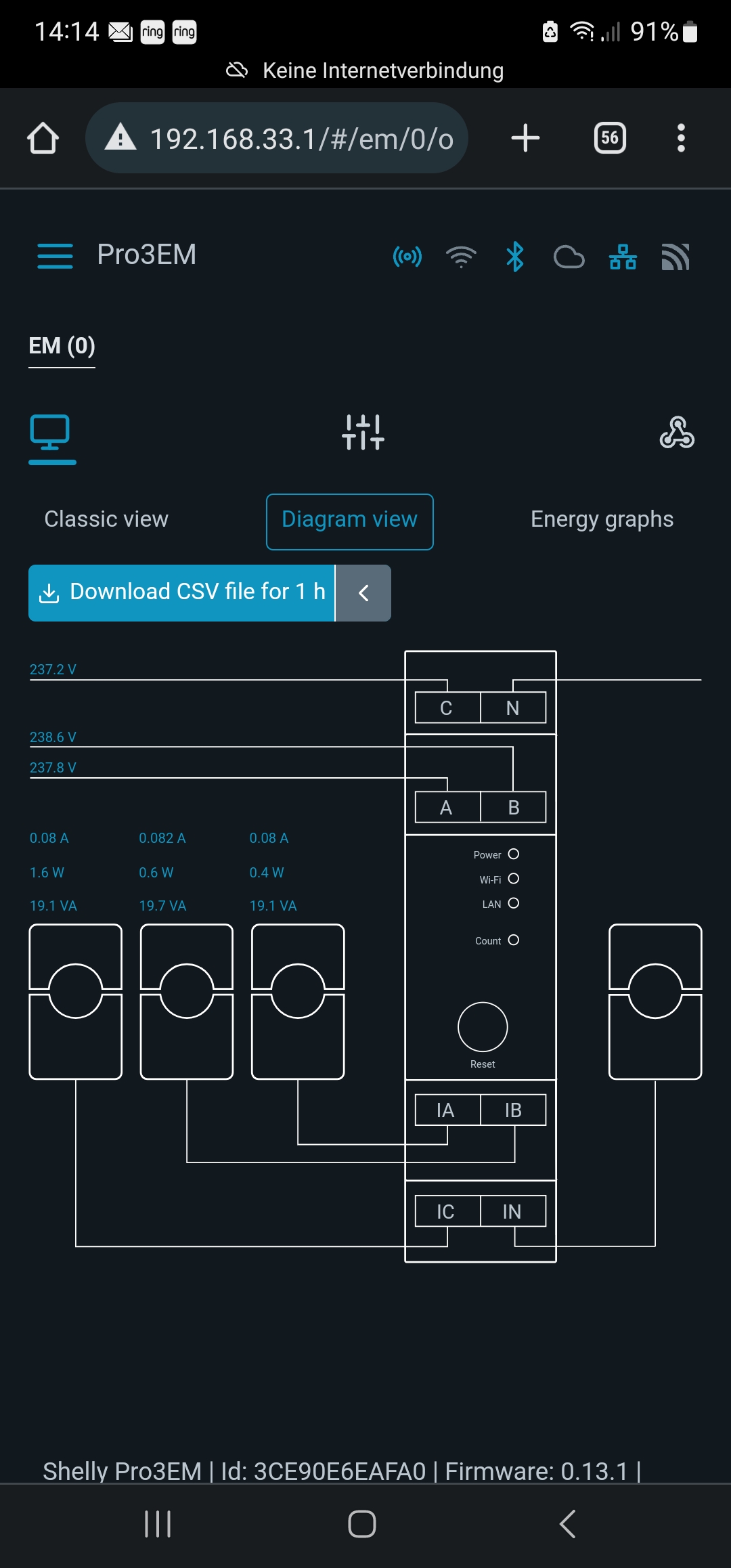 Spannung/Strom -Anzeige zum Einschleifen in 3-phasige Versorgungsstränge