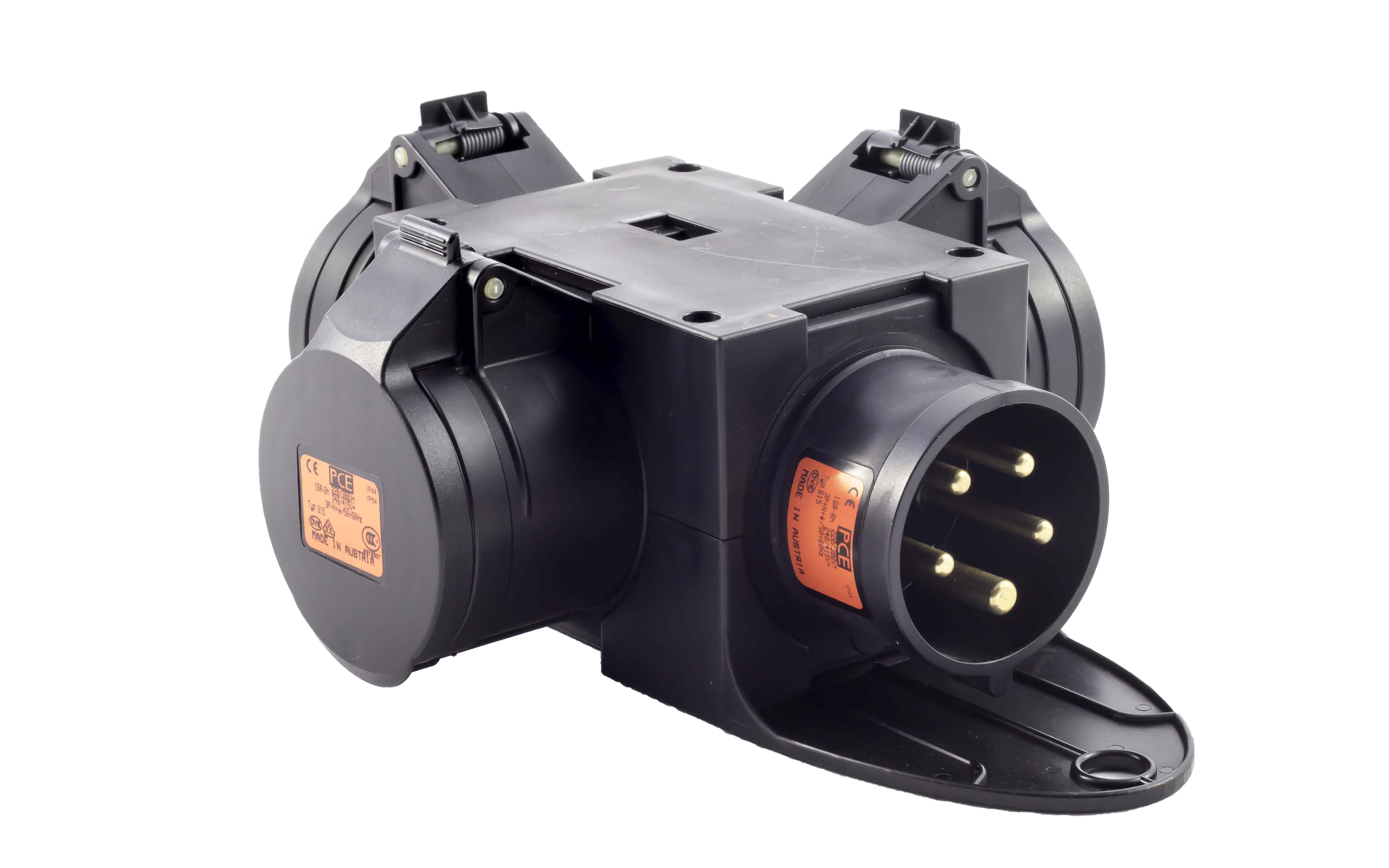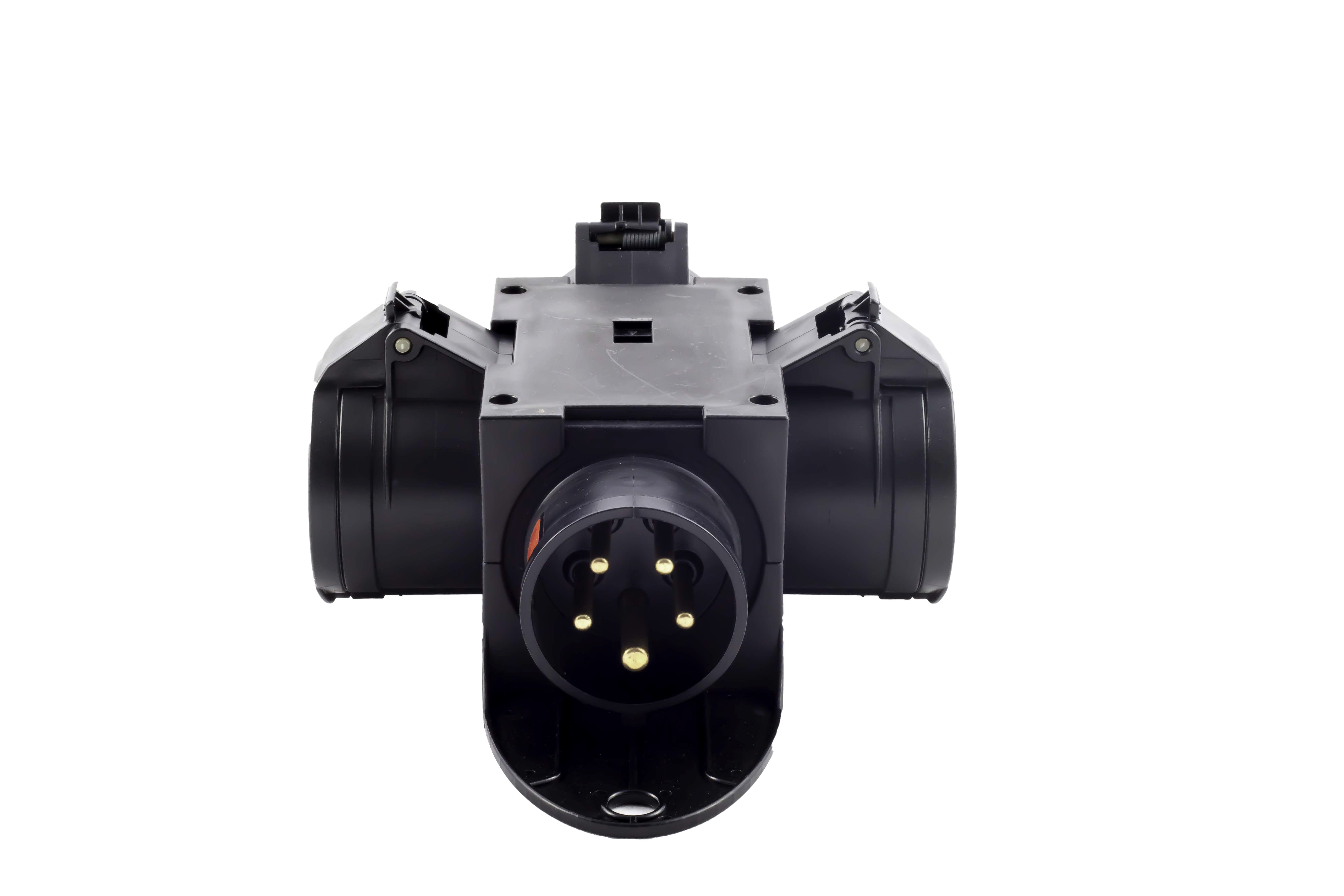 Beim CEE16+ handelt es sich um einen Verteiler, der es ermöglicht eine CEE16 Leitung in drei weitere Wege zu verzweigen.